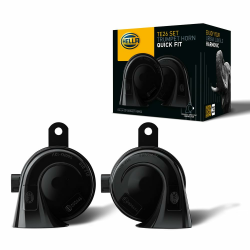 HELLA Fanfare - HELLA OE-CONNECT HORN TE26 SET - 12V - 110dB(A) - 400Hz-500Hz - Tiefton/Hochton - elektrisch - ECE - Gehäusefarbe: schwarz - Stecker: BMW - Menge: 2 - 3FH 012 010-041 Für BMW