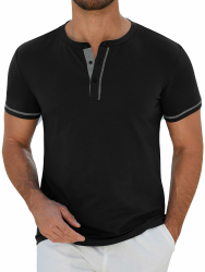 Henley Shirt Herren Sommer Kurzarm Tshirt Männer Baumwolle Casual T Shirt mit Knopfleiste XXL Schwarz