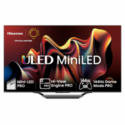 4K Mini LED Pro ULED: Die von Hisense eingesetzte Mini-LED Technologie sorgt für hohe Spitzenhelligkeiten und atemberaubende Kontraste. Die intelligente Bildverbesserung der Hi View Engine, basierend auf einem Quad Core Prozessor sorgt in Kombination mit Local Dimming und Wide Color Gamut durch die Quantum Dot Technologie für präzise Farben, tiefe Schwarztöne und höchsten Kontrast. Modernste HDR Technologie: Dolby Vision IQ, HDR10, HDR10+, HLG - ermöglicht einen extraweiten Farbraum, sodass Bilder mit hohem Dynamikumfang dargestellt werden. Für den Zuschauer werden so feinste Details in den Bildern sichtbar. Game Mode Pro 144 Hz, AMD Freesync Premium & Game Bar: Für Gamer bietet der Game Mode Pro pures Spielvergnügen mit HDMI 2.1 Unterstützung (144Hz@4K). Mittels ALLM schaltet der Fernseher in Verbindung mit der Spielekonsole automatisch in den Game-Modus mit der geringsten Latenz. Freesync sorgt für eine dynamische Anpassung der Bildwiederholfrequenz an die Aktualisierungsrate von Videoinhalten für eine stromsparende und ruckelfreie Videowiedergabe. Dolby Vision IQ: Dolby Vision gehört zu den höchsten HDR Formaten. Es verstärkt die Fernseheinstellungen, sodass feinere Details selbst in dunklen Szenen sichtbar werden. Mit IQ berechnet der Fernseher die Helligkeit im Raum mit ein für ein atemberaubendes Filmerlebnis. Dolby Atmos: Tauchen Sie mitten ins Geschehen ein und lassen sich von kraftvollem Sound umgeben. Mittels Dolby Atmos kann der Fernseher den Effekt simulieren, dass der Sound nicht nur von vorne und unten kommt, sondern auch von oben: für ein rundum perfektes Sounderlebnis. Solarfernbedienung: Die im Lieferumfang enthaltene Fernbedienung verfügt über ein eigenes Solarpanel und kann so den Großteil der Energie zum Betrieb selbst erzeugen oder per Kabel geladen werden. Dadurch werden keine zusätzlichen Batterien mehr benötigt.
