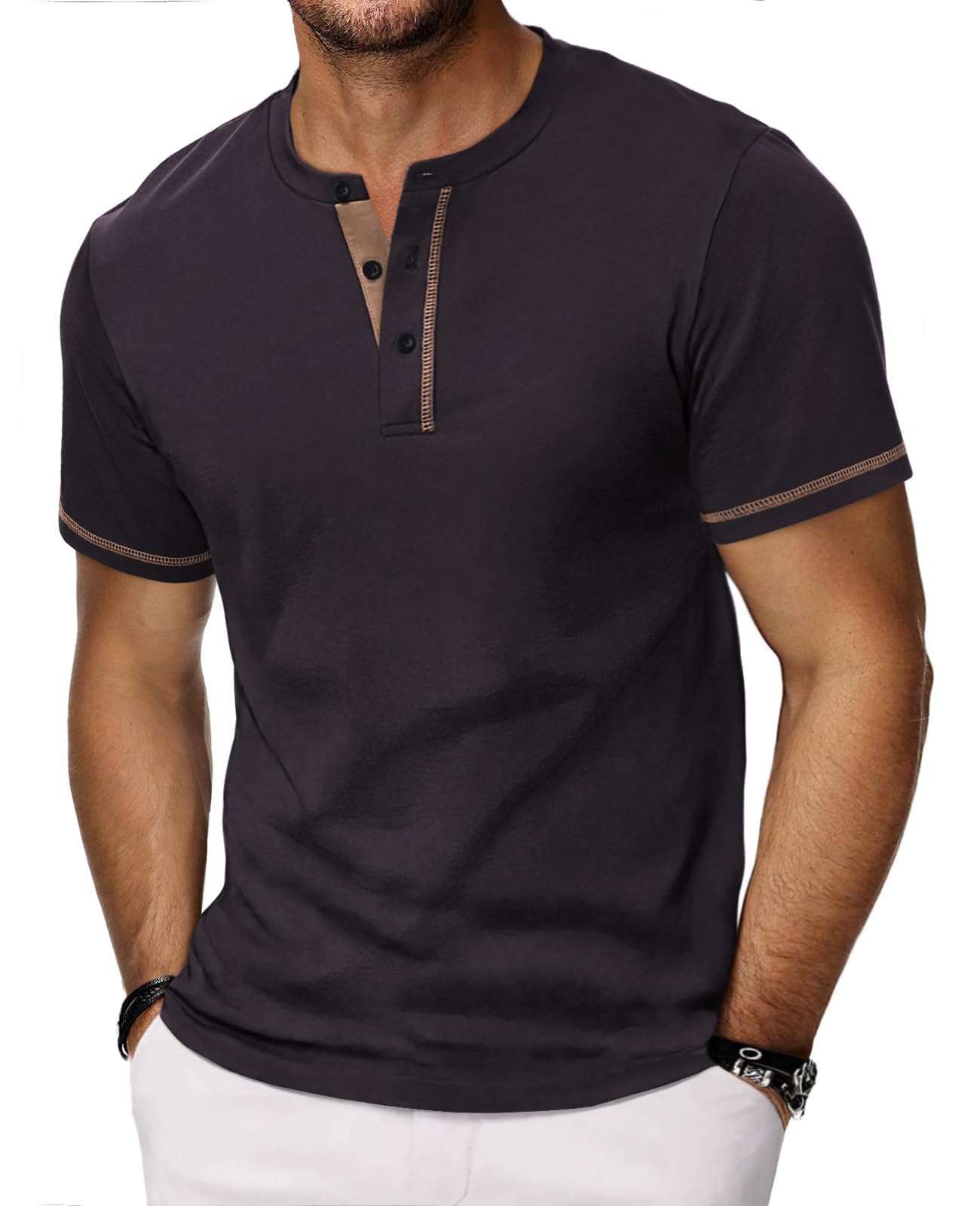 Entdecken Sie das HMIYA Henley Kurzarm T-Shirt für Herren in Dunkelgrau! Aus hochwertiger Baumwolle gefertigt, bietet es Komfort, Stil und Vielseitigkeit. Das moderne Design mit Color-Blocking-Ärmeln und dem Drei-Knopf-Design macht es zur perfekten Wahl für jeden Anlass. 🌟