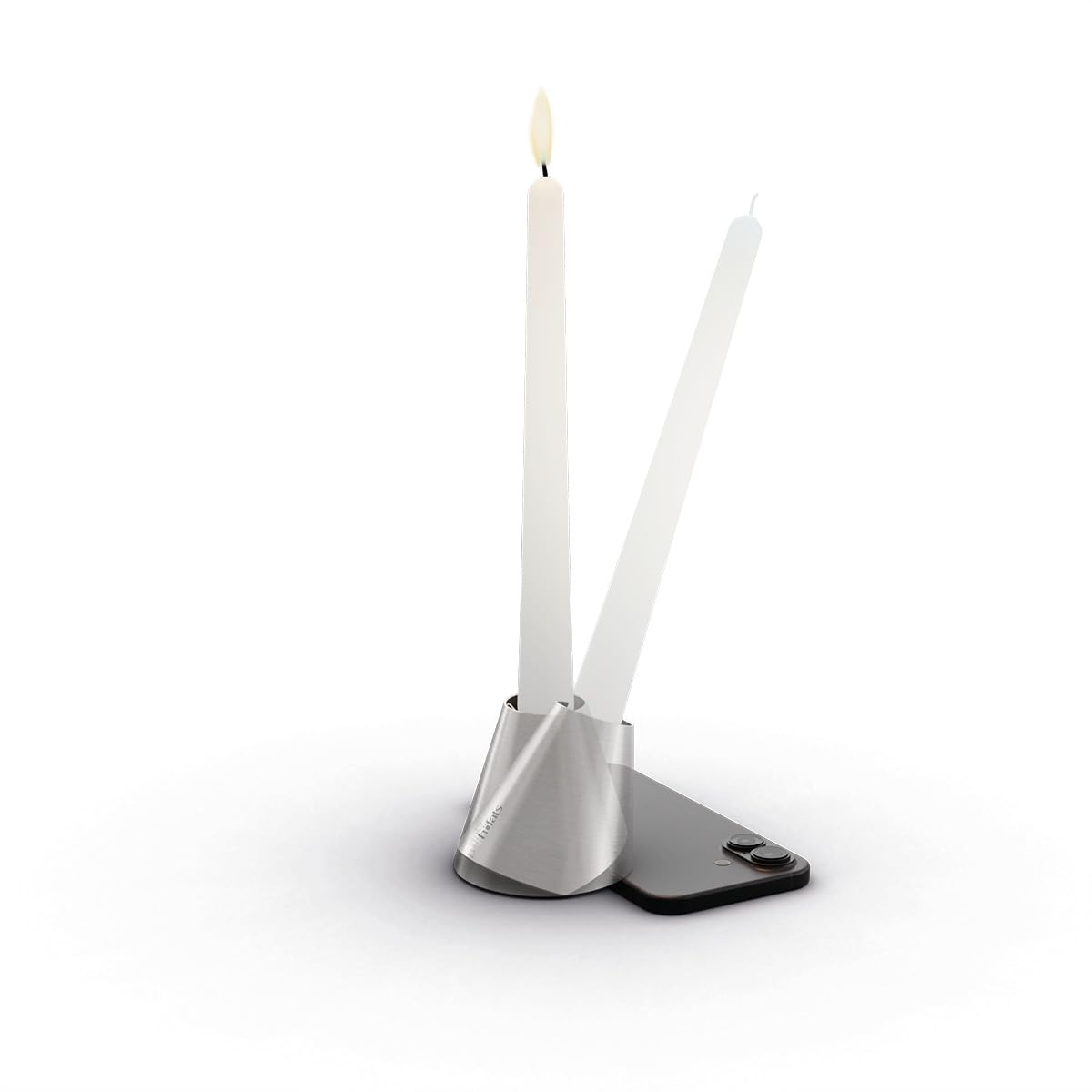DIGITALE AUSZEIT & ACHTSAMKEIT: Innovativer Kerzenhalter aus Edelstahl, richtet sich auf sobald ein Smartphone darunter platziert wird - fördert bewusste Handy-Pause, gemeinsame Momente, weniger Bildschirmzeit und mehr Blickkontakt.