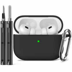 Inesore Compatible with Airpods Pro 2 hülle Cover,Silicone Protective Case for Apple Airpods Pro 2nd/1st Generation USB-C Charging Case with Cleaner Pen,for Women Men-Black B-Black
