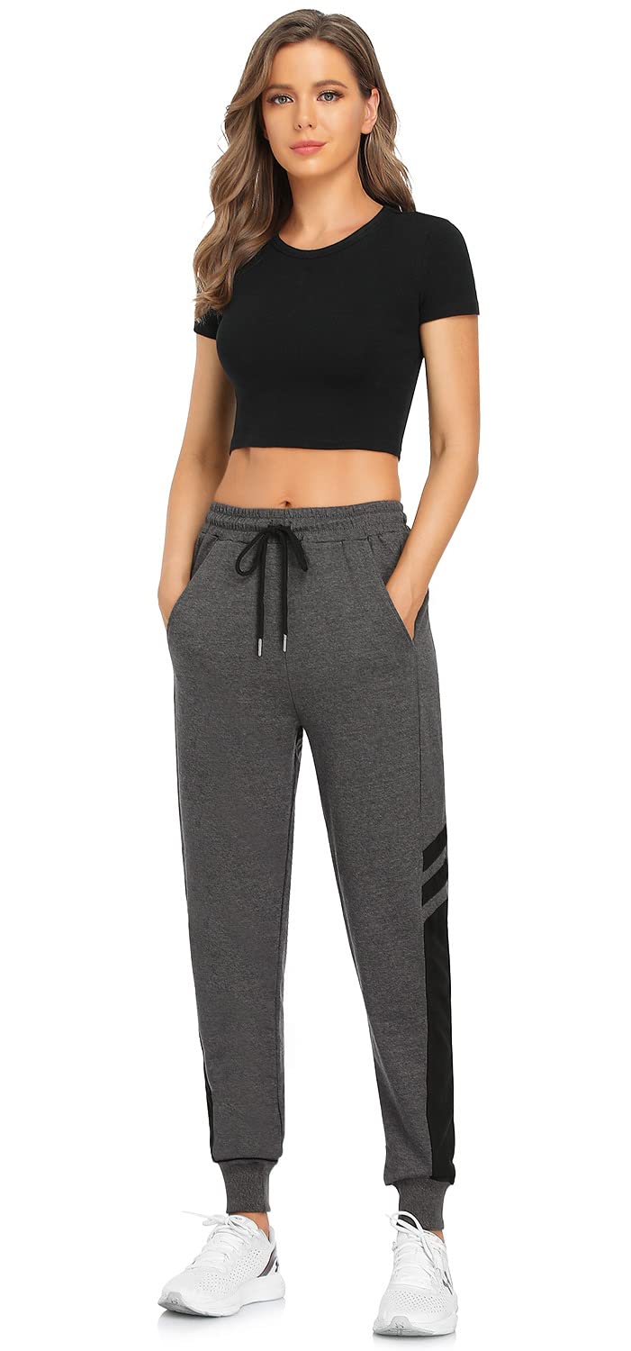 Jogginghose Damen Lang Sporthose Frauen Damenhose mit Gummizug Warme Freizeithose Relaxhose Trainingshose Sportbekleidung Yoga Hose Sweatpants mit Streifen für Sport Freizeit Schwarz Blau Grau 3XL Grau