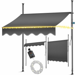 KESSER® Klemmmarkise mit Handkurbel & LED Lichterkette | Balkonmarkise ohne Bohren | Markise UV-beständig höhenverstellbar & wasserabweisend | Sonnenschutz für Balkon Terrasse & Garten 250cm 250cm Anthrazit - mit LED