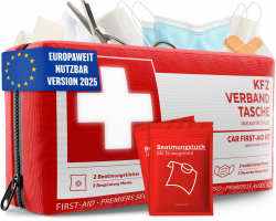 đ„ EUROPAWEIT GĂLTIG! Das Erste Hilfe Set entspricht der neuesten Norm DIN 13164:2022 & ist EU-StraĂenverkehrskonform. Flexibel & sorgenfrei Auto fahren mit der KFZ-Verbandtasche fĂŒr Ihr Auto! Sicherheit & Schutz mit mehrsprachig bebilderter Anleitung & sauber sortierten Verbandsmaterialien. BuĂgelder vermeiden & sorgenfrei durch jede Kontrolle & Panne dank neuester Vorschrift 2025. Stetige QualitĂ€tskontrollen machen Ihre Autoapotheke zu einem zuverlĂ€ssigen Wegbegleiter. Praktische Klettstreifen fĂŒr einfache Befestigung im Auto.