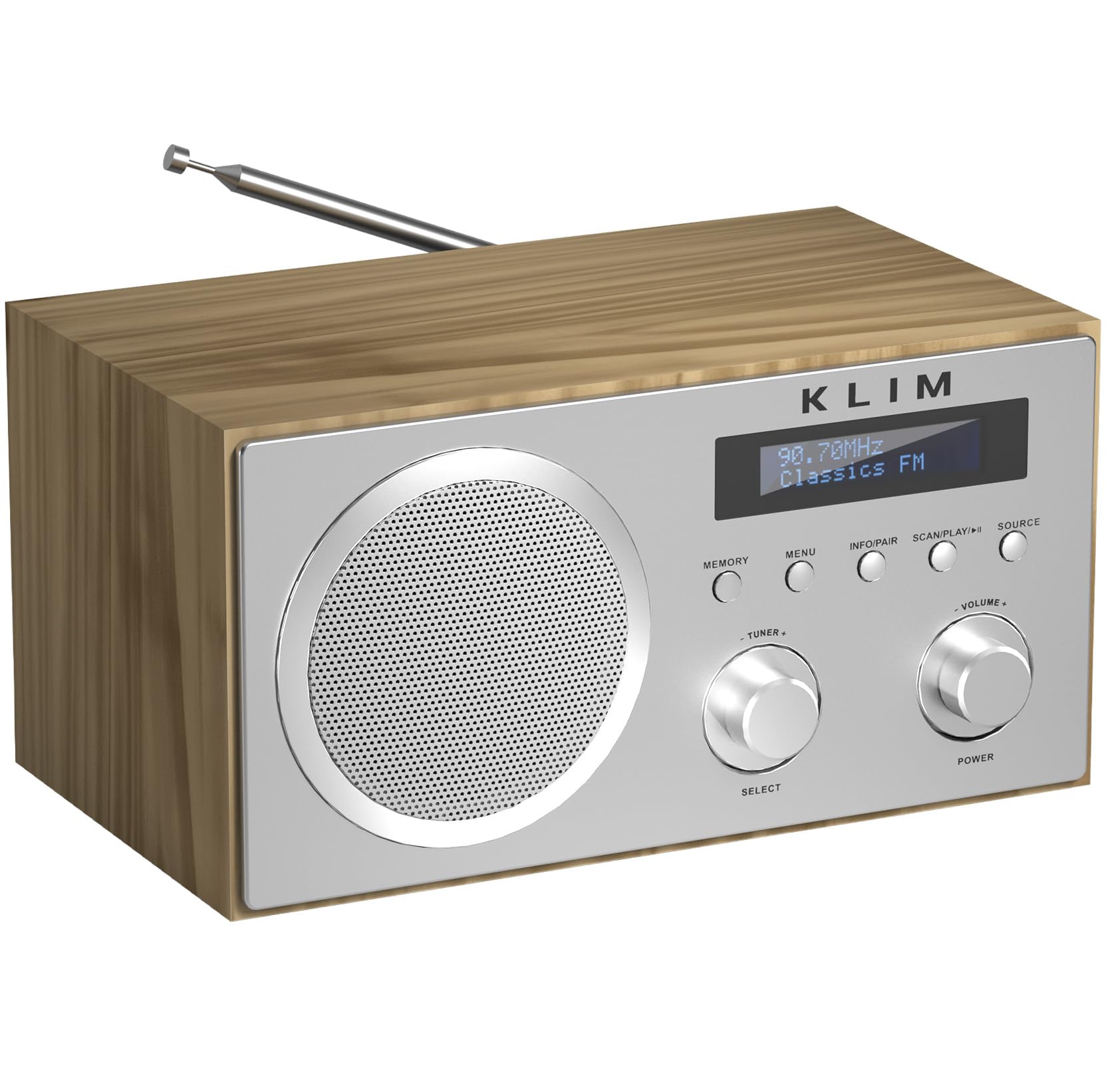 KLIM DAB Plus Radio mit Bluetooth | Digital Radio DAB, DAB+ und FM mit Holzgehäuse | Funktioniert am Stromnetz | HiFi-Lautsprecher | USB/AUX-Buchse | Radiowecker mit Alarm
