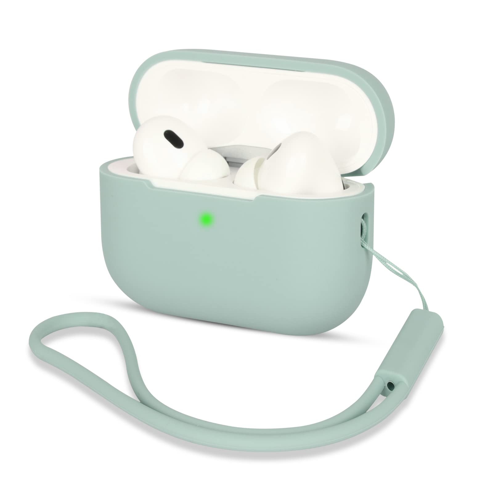 Kompatibel mit AirPods Pro 2 Hülle Case, Silikon Stoßfeste Schutzhülle für AirPods Pro 2. Generation 2022 Case Cover mit Silikon Lanyard, Front-LED Sichtbar, Cloud Grey