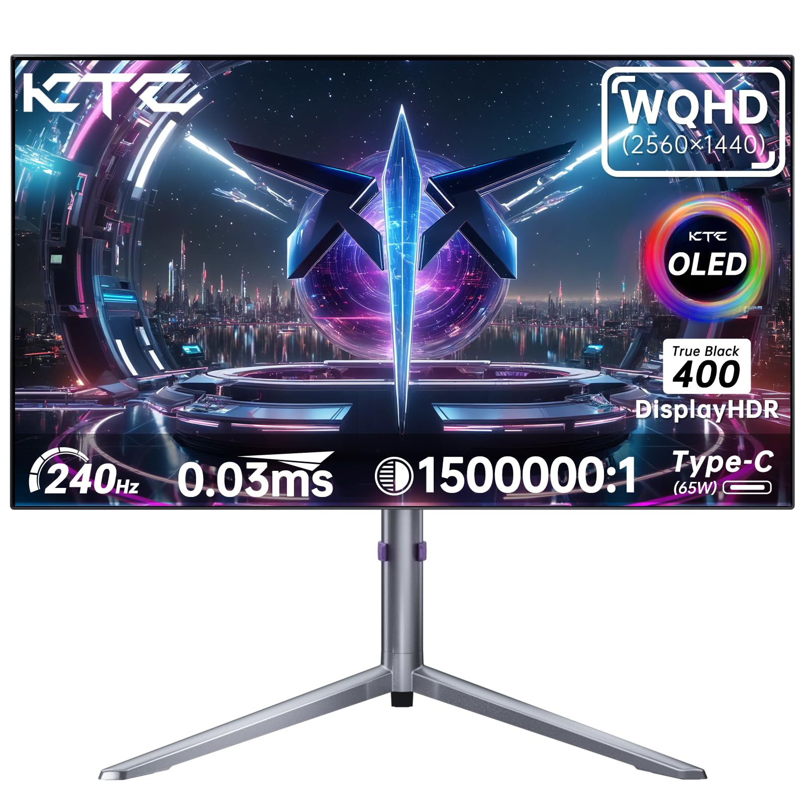 KTC OLED Gaming Monitor 27 Zoll WQHD 1440P - 65W USB C (Unterstützt Videoausgang), 240Hz / 0.03ms GTG, 100% DCI-P3, DisplayHDR True Black 400, Adaptive Sync, Integrierte Dual-Lautsprecher - Weiß OLED QHD 240Hz 0.03mm 27 Zoll