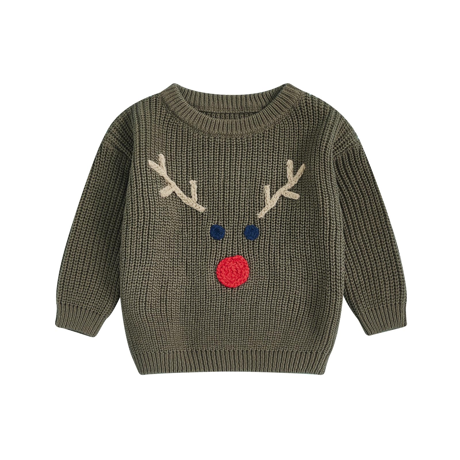 L&ieserram Baby Jungen Mädchen Weihnachten Gestrickt Pullover Jumper Weihnachtspullover Neugeborenen Kinder Langarm Strickpullover Pulli Kleinkinder Kleidung Outfit Elch - Armeegrün 12-18 Monate