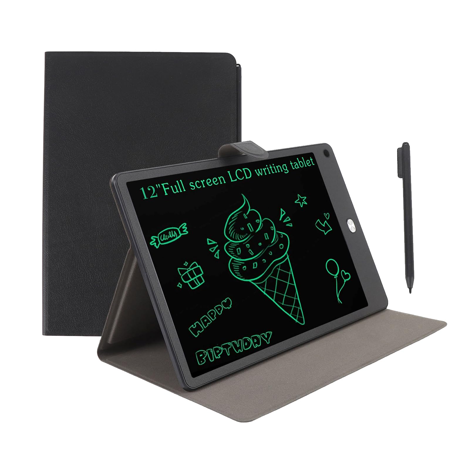 LCD -Tablet für Erwachsene, 12 -Zoll -Vollbild -Zeichnungstablette, Elektrisches Handschriftenpad, Wiederverwendbares Löschen Digitaler Notizblock mit Stift, Pu Case