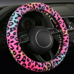 Lenkradhülle Plüsch Leoparden,Lenkrad Abdeckung,Lenkradbezug,Gestickt Niedlich,Schweißabsorber,38cm (plush-leo)