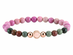 LIEBESKIND BERLIN Damen Beads Armband – Armschmuck aus Edelstahl und Halbedelsteinen - Schmuckstück und Talisman zugleich – elastisch, handgefertigt, modisch, vielseitig kombinierbar Roségold / Seestein / Rhodonite