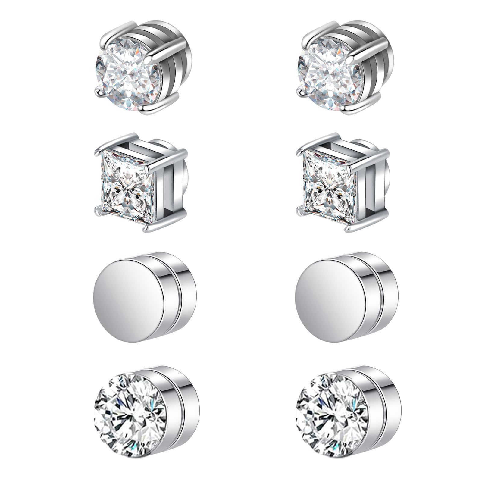 Magnet Ohrstecker Fake Ohrrings Magnetischer Ohrstecker Silber Schwarz für Herren Mann Damen Chirurgenstahl 8stk Silber