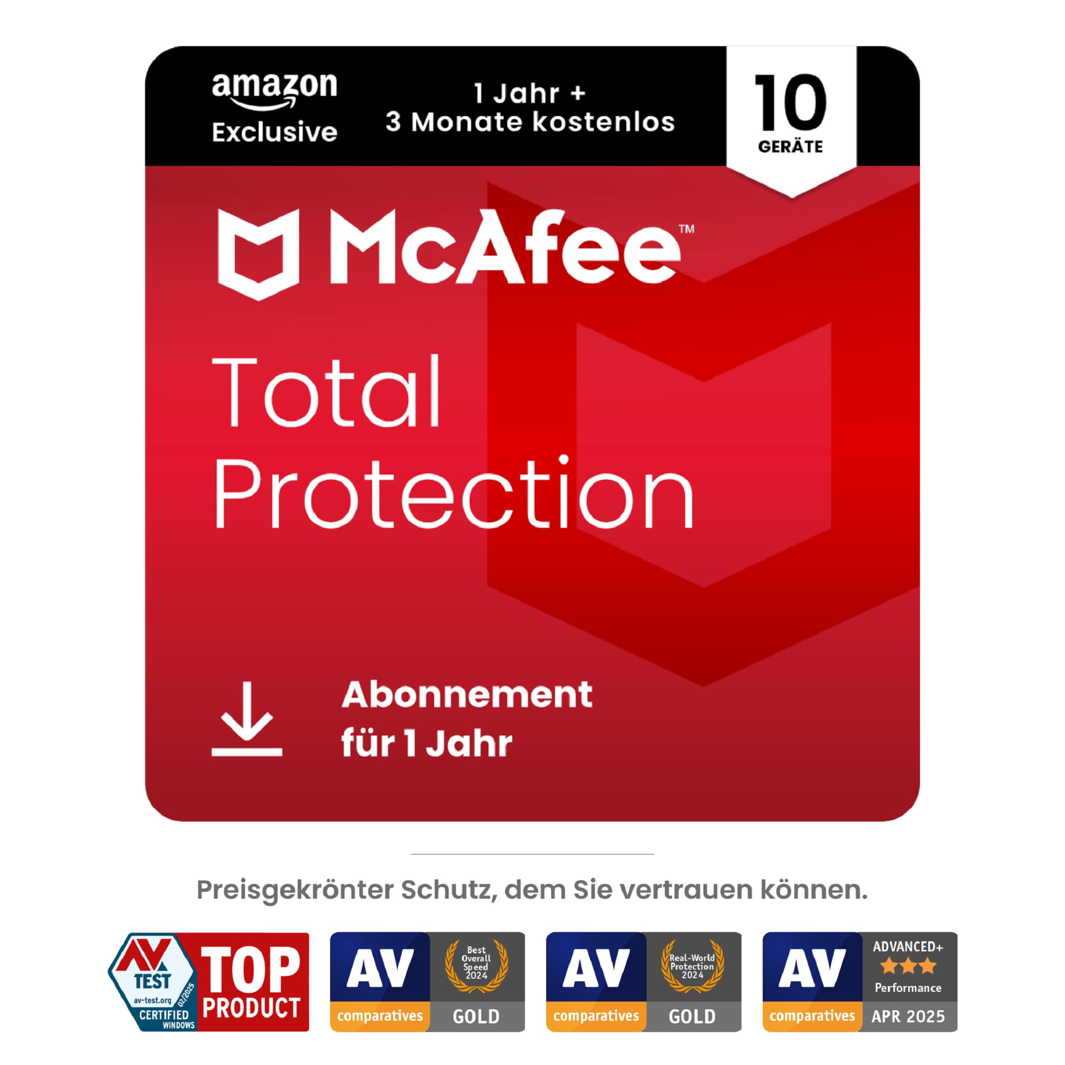 McAfee Total Protection (10 Geräte) 2025 | 15 Monate | Secure VPN, Sicherheitssoftware mit Virenschutz, Kennwort-Manager, Identitätsüberwachung | Digitaler download Activation code via email 15 Monate 10 Geräte