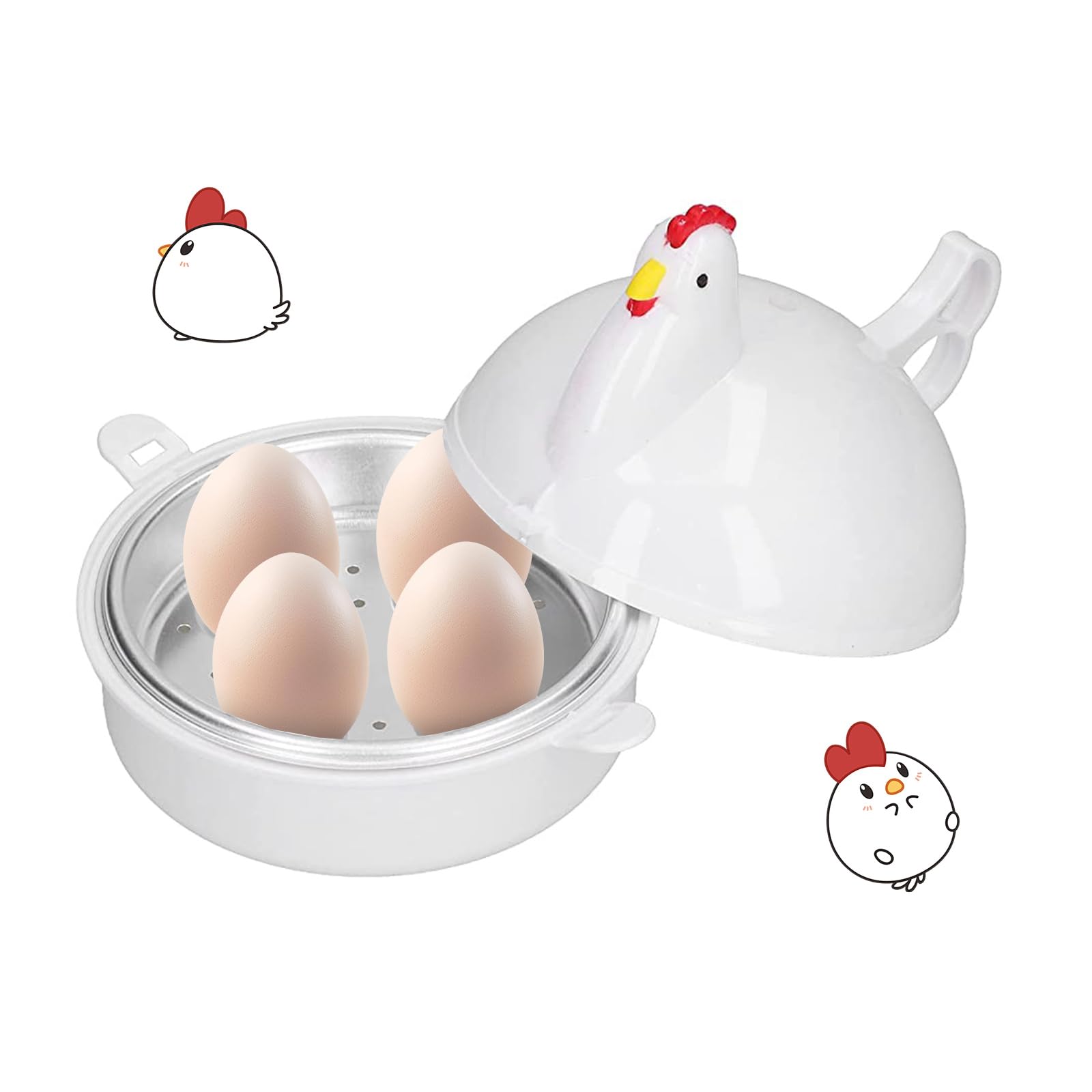 Mikrowelle Eierkocher Mit 4 Eier Kapazität, Eierdämpfer Hühnerform Mikrowelle Dampfkessel Dampfer Mini-Eier Ei-kocher Küchenhelfer Mikro-Eierkocher für Frühstück Kochen Frühstücksei