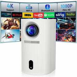 Mini Beamer 4K 1080P, Mini Projektor 200 ANSI Lumen, Tragbarer Videoprojektor, Automatische Vertikale Korrektur und WiFi 6/BT5.4, Eine Neue Generation von Geschlossenen Smart-Projektoren