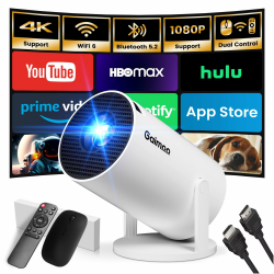 Mini Beamer 4K Full HD 1080P mit Apps Projektor, Smart Beamer mit WiFi 6 und Bluetooth 5.2 Auto Keystone 180° Drehbar Kompatibel mit HDMI/TV Stick/Memory Stick/Laptop, Weiß
