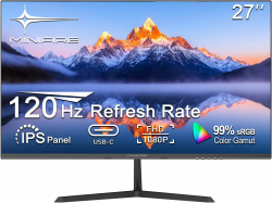 Minifire Monitor 27 Zoll Bildschirm im rahmenlosen Design, IPS, 120Hz, USB Tpye-C, FHD(1080P), sRGB110%, 300 Nits, FreeSync, Eye-Care, HDMI USB Type-C Anschlüsse, unterstützt VESA - Schwarz 27" / FHD / IPS FHD/120Hz/Type-c