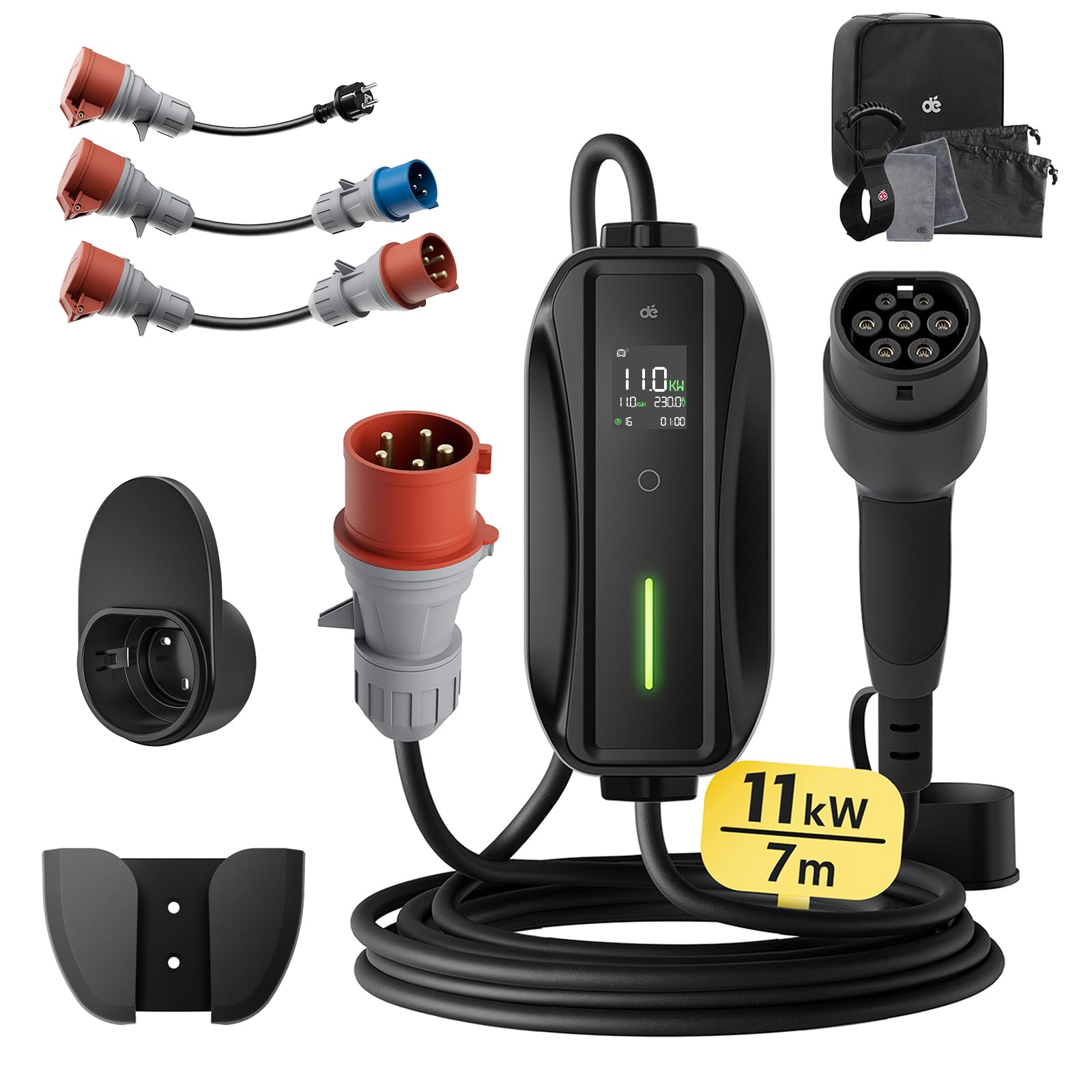 🚗🔌 Lade dein Elektrofahrzeug mit der mobilen Wallbox 11kW Ladestation und dem Traveller Adapter Set einfach und kostengünstig zu Hause oder unterwegs. 3x schneller als ein Haushaltsstecker, 2-in-1-Funktion für maximale Flexibilität. Inklusive umfangreichem Zubehörpaket. Breite Kompatibilität mit vielen Elektrofahrzeugen.