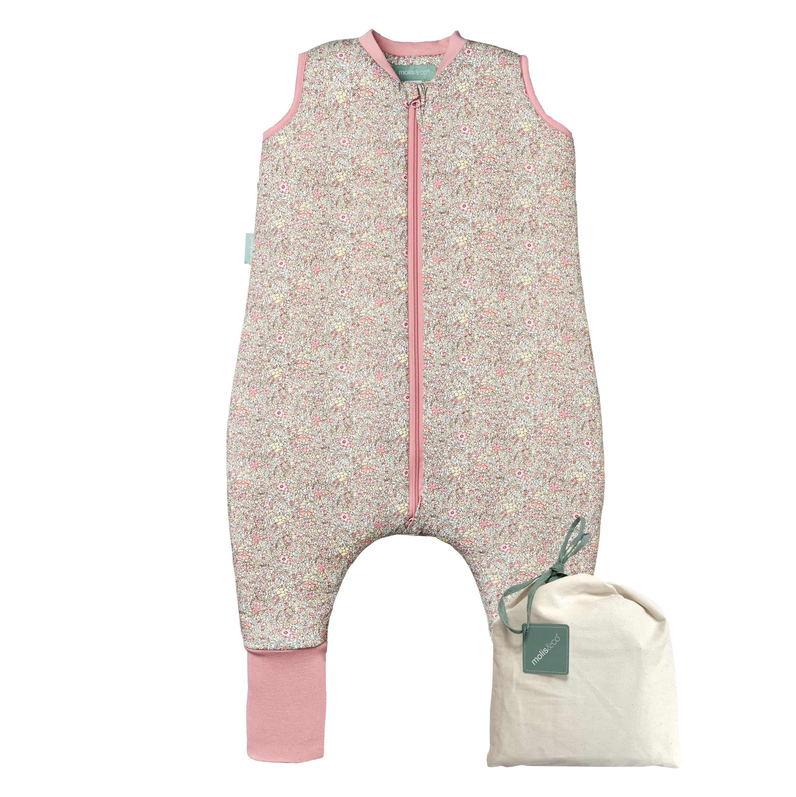 molis&co - Baby schlafsack mit Füßen und Socke - Ideal für den Winter - Babyschlafsack mit Beinen 2,5 tog - 100% Baumwolle (Oeko-TEX 100), Premium Qualität - Pastel Floral (80 cm) 80 cm (2 Jahre) Pastel Floral