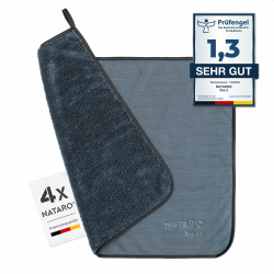 Entdecken Sie das NATARO® 4 Stück Fast Dry it. Premium Trockentuch für Duschkabine, Auto, Haushalt, Camping! Ideal zum Aufsaugen und Trocknen im Haushalt, Bad, Auto, Motorrad, Boot und mehr. Enorme Wasseraufnahme durch spezielle Curly-Faser-Technologie. Jetzt fusselfrei und kratzfrei reinigen und trocknen!