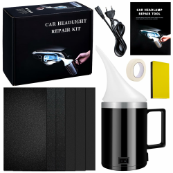 【SCHEINWERFER AUFBEREITUNG SET】 Scheinwerfer polierset beinhaltet: Zerstäuberbecher + Becherdeckel + Haushaltsnetzkabel + 6 Blatt Schleifpapier (180, 240, 360, 600, 800, 1200) + Schwammtuch + Klebeband + Anleitung. HINWEIS: Dieses Kit enthält keine Flüssigkeiten
