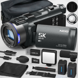 NBD 5K Camcorder 48MP F1.8 mit 16X Zoom & 270° Drehdisplay - Profi-Vlog Kit inkl. Mikrofon