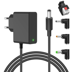 12V DC Steckernetzteil, Kompatibel bis zu 2 Ampere 24 Watt(12V 2A, 12V 1.5A, 12V 1A, 12V 0.8A, 12V 0.5A) Eingangsspannung 100V-240V, 50/60Hz, Netzteil Ladekabel 1.5m mit Kontrollleuchte. 12V DC Netzteil ausgestattet mit Stecker 5.5mm x 2.1mm, grün 5.5mm x 2.5mm, gelb 4.0mm x 1.7mm, schwarz 3.5mm x 1.35mm für LED-Streifen / Externe-Festplatte / WLAN-Router / CCTV-Kamera / Laptops / LCD-Monitor / IP-Camera / TV-Box / Mediaplayer. Netzteil AC-DC Adapter 12V, Mit Kurzschluss, Überspannung, Überstrom Schutz, In Übereinstimmung mit sicheren Stromstandards. Adapter Netzteil nur für 12V-Geräte geeignet, kann nicht für 5V, 6V, 9V, 18V, 24V verwendet werden, Kann nicht für eine Leistung von mehr als 24 W verwendet werden. Bitte kontaktieren Sie uns bei Qualitätsproblemen bezüglich des Produkts.