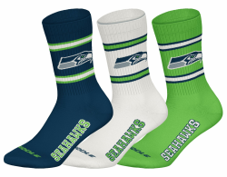 NFL Unisex Seattle Seahawks 3pk Crew Socks, Navy-White-Green, 43-46 EU