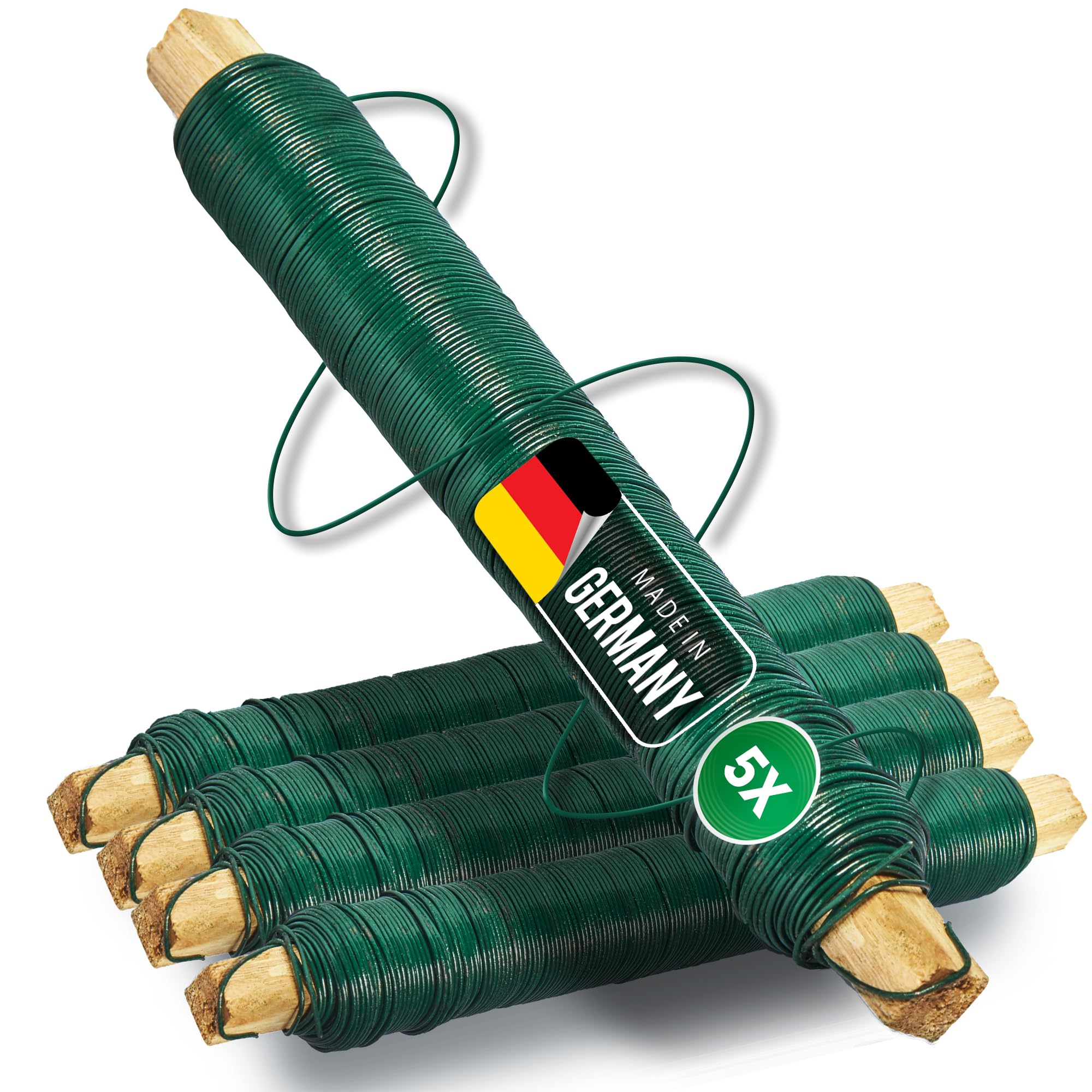Novatool 5x Wickeldraht I grün I 0,65 mm I Draht I Basteldraht Gartendraht Blumendraht Bindedraht Biegedraht Pflanzendraht rostfrei Dekoband Dekodraht