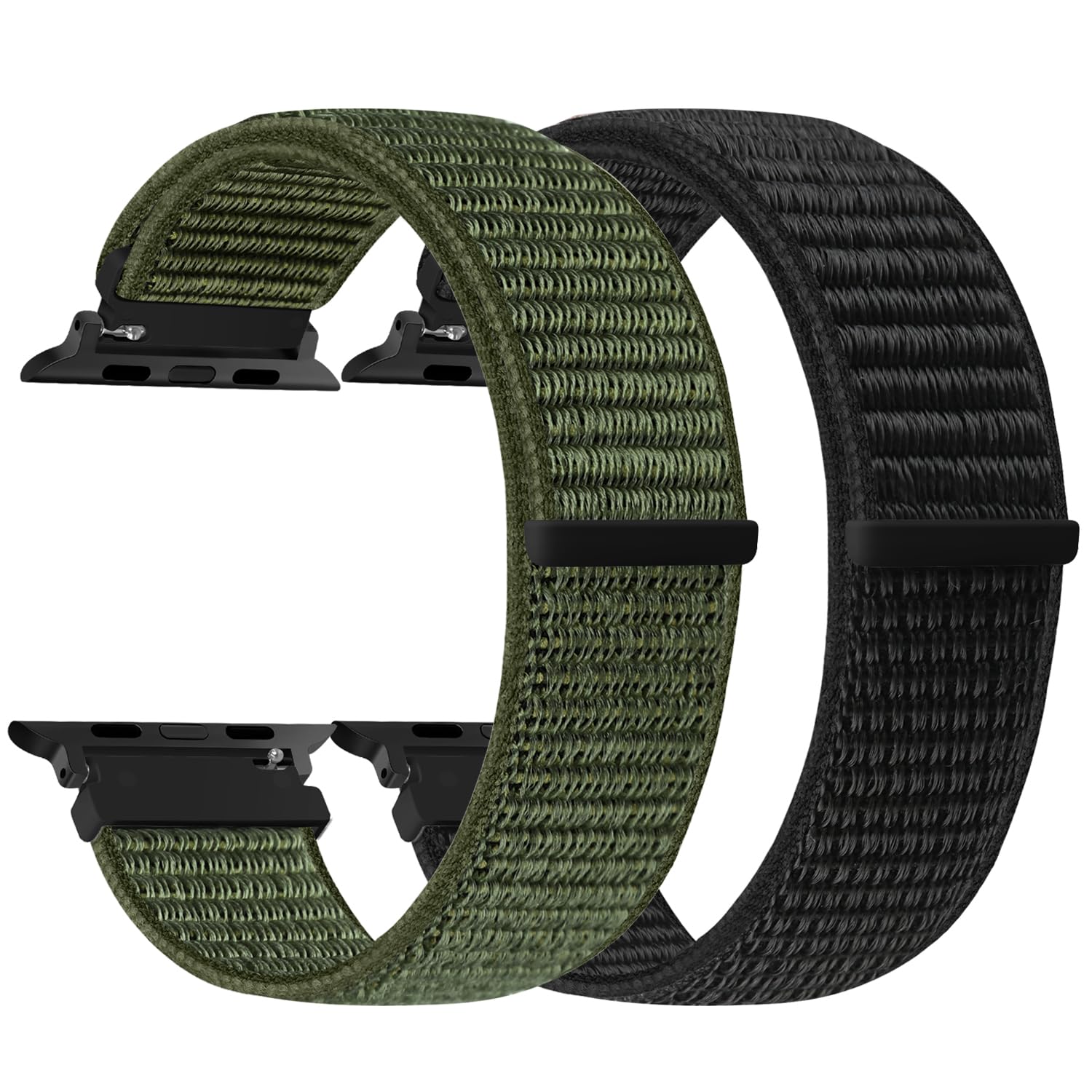 Nylon Armband Kompatibel mit Apple Watch Armband 49mm 46mm 45mm 44mm 42mm 41mm 40mm 38mm Damen Herren, 2 Stück Ersatz Sport Uhrenarmband für iWatch Series 11 10 9 8 7 6 5 4 3 2 1 SE Ultra 3/2/1 Dunkel Schwarz+Marinegrün 44mm/45mm/46mm/49mm/42mm(Series 3 2