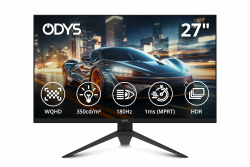 ODYS i27-Q-180 - 27 Zoll Gaming Monitor (69 cm Bildschirm, WQHD, 2.560x1.440 Pixel, 180 Hz, 1 ms Reaktionszeit (MPRT), Fast IPS Panel, FreeSync, HDMI, Display Port, 3,5mm Kopfhöreranschluss)