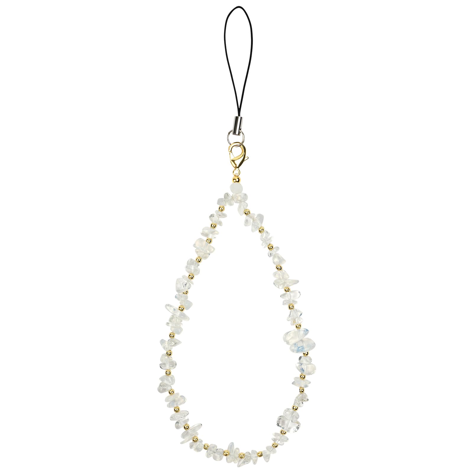 OFFCUP Handy-Armband, Handy Perlen Schlüsselband mit 2 Handy Patch, Handykette Perlen Leder Doppelkette Handyanhänger, Handy-Charm, Handy Lanyard, Handykette Handyband Handschlaufe Weißer Stein