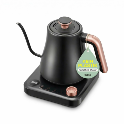 Elegantes Schwanenhals-Design für maximale Kontrolle:Der schlanke Gooseneck-Ausguss ermöglicht einen gleichmäßigen und präzisen Wasserfluss – perfekt für Handfilterkaffee oder Barista-Pour-Over. Das elegante Edelstahlgehäuse in Schwarz macht diesen Wasserkocher Schwanenhals zu einem stilvollen Highlight in jeder Küche
