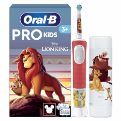 Oral-B Pro Kids König der Löwen Elektrische Zahnbürste für Kinder — Electric Toothbrush ab 3 Jahren inkl. 1 Aufsteckbürste, Reise-Etui und 2 Putzmodi für Zahnpflege, Weiß/Rot König der Löwen Elektrische Zahnbürste mit Reiseetui