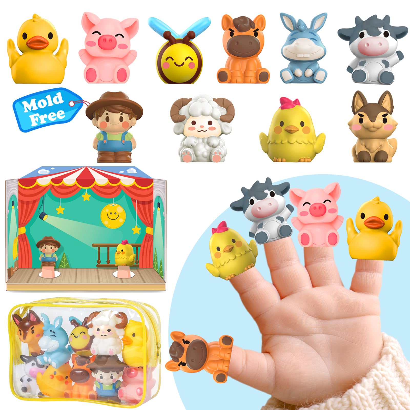 Oriate Bauernhof Tiere Fingerpuppen, Badespielzeug für Kinder mit Aufbewahrungstasche, Kleinkind-Spielzeug für Story Time Stuffer mit Performance Bühne, Mold Free Travel Toys Party Favors 12m+ 10 Pc