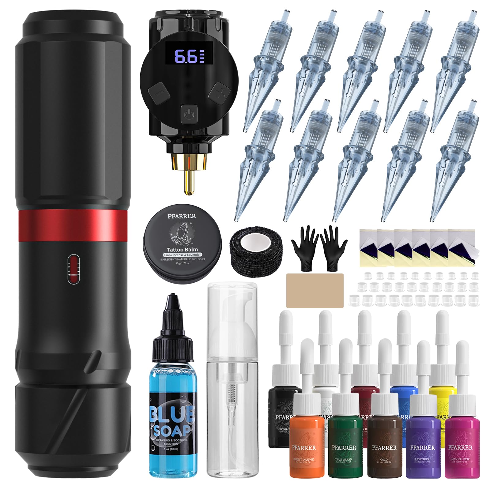 PFARRER Tattoo Maschine Set mit 4 Modi 900mAh Akku LCD Digital 10Pcs Tattoo Cartridge 10 Tattoo Inks Kompletter Tattoo Pen Maschine Zubehör PRP83KIT-1 Black 🖋️🎨