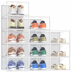🥿【Hochwertiges Material】 Die Schale besteht aus robustem Polypropylen-Material, das gegen Stürze und Verschleiß beständig ist; Der Deckel besteht aus stabilem PP-Hartmaterial, wodurch sichergestellt wird, dass die Schuhbox stabil, langlebig und nicht leicht verformt ist.