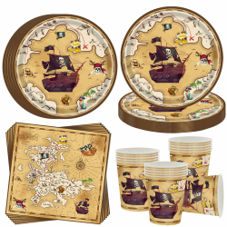 đ Piraten Partygeschirr Set mit Piratenschiff Motiv fĂŒr unvergessliche Kindergeburtstage! EnthĂ€lt 16 Partyteller, 20 Servietten und 16 Pappbecher. Hochwertiges, umweltfreundliches Papier. Sparen Sie Zeit und genieĂen Sie die Party! đ