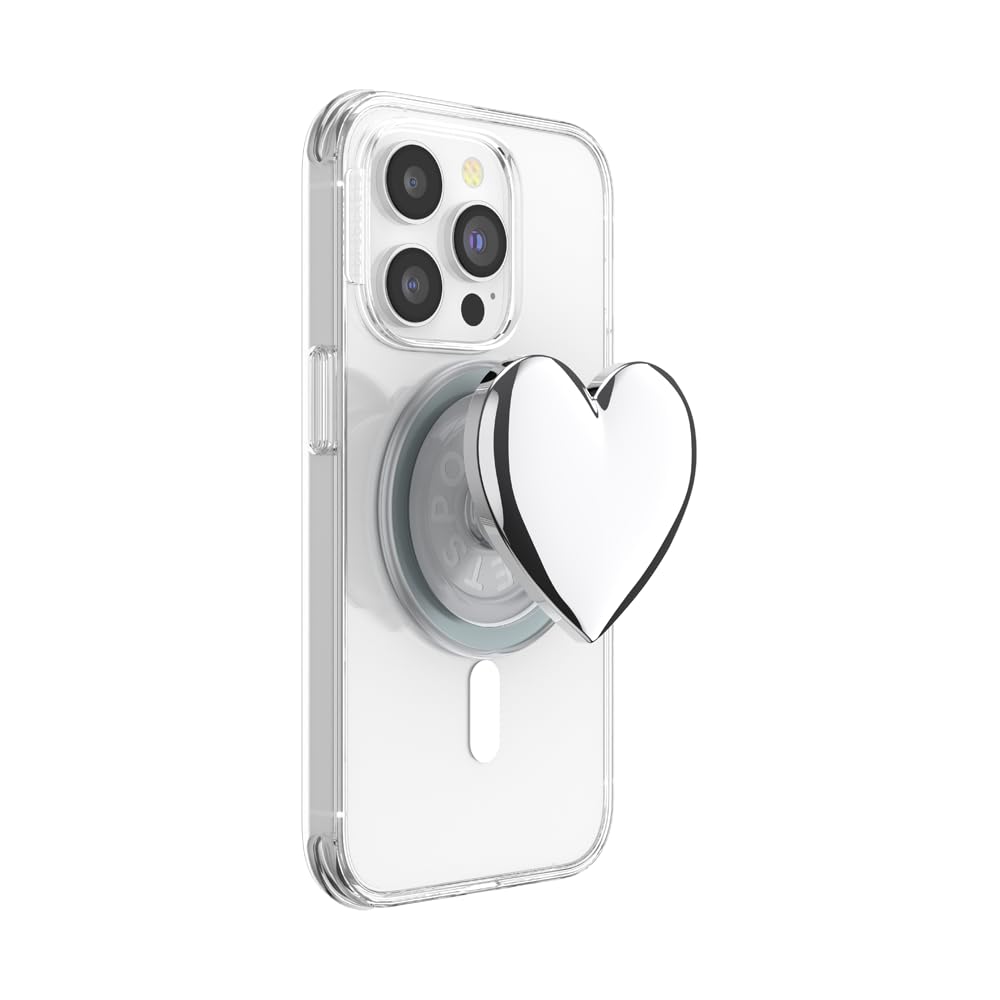 PopSockets Phone Grip for MagSafe with Kickstand, Magnetic Stand, Swappable Top, Secure Hold for iPhone MagSafe Cases, Phone & Tablet Grip - Enamel Silver Heart Emaille Heart of Silver MagSafe