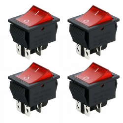 Powice 4 Stück Glühen Schalter,Schiffstyp Selbstsichernder 4-Poliger Schalter 230V mit Rotem Licht,Wippschalter16A/250V/20A/125V Geeignet für den Einbau in Häusern, Autos und Elektrischen Geräten(Rot)
