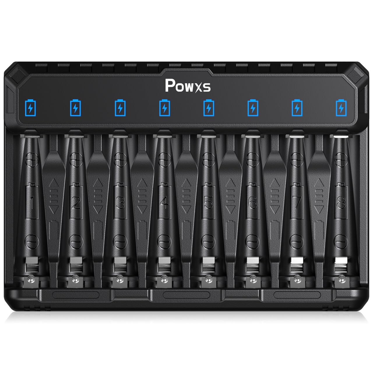 POWXS AA AAA Akku Ladegerät für NIMH/NICD/Lithium/Li-ion AA AAA 1.2V 1.5V Akku, 8-Ladeplatz Wiederaufladbare Universal Schnell Batterie Ladegerät mit LED Anzeige & mit USB-C Eingang