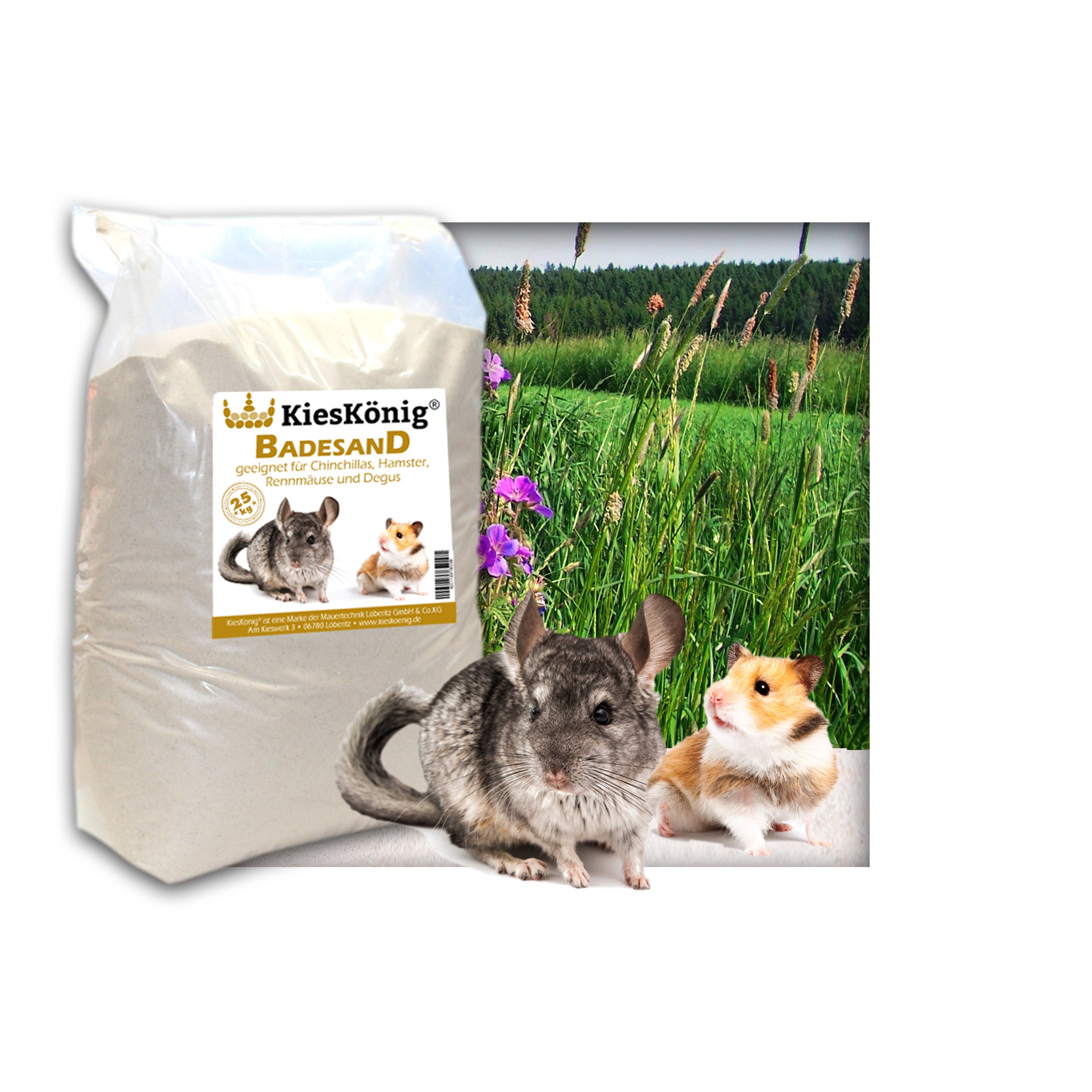 Premium Badesand für Chinchillasand, Hamster, Rennmäuse und Degus - samtweiche abgerundete Körnung 25 Kilogramm