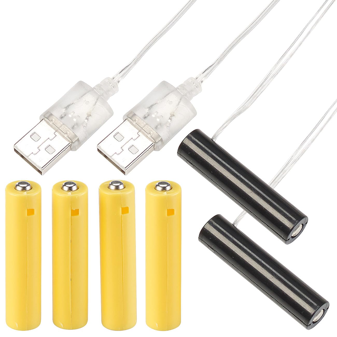 2er-Set USB-Batterie-Adapter inklusive jeweils 1 schwarze Dummy-Batterie, 2 gelbe Dummy-Batterien und deutscher Anleitung. Batteriegeräte Netzteil - Außerdem relevant oder passend zu: Akku Ladegerät, Batteriehalter, Weihnachtsdeko, Lichterkette, Weihnachten, Powerbank, Spielzeug, Netzkabel, ersetzen