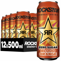 Rockstar Energy Drink Blood Orange - Zero Sugar - Koffeinhaltiges Erfrischungsgetränk mit Blutorange Geschmack ohne Zucker, EINWEG (12 x 500ml)