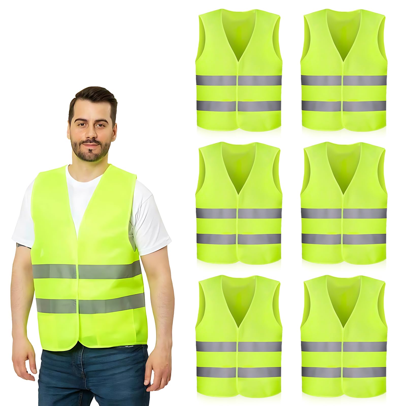 ROTKUSZ 6 Stück Warnwesten Auto, Sicherheitswesten Set, Auto Reflektorweste, Warnweste 360° Reflektierend Rundum für Autofahrern Fahrern Arbeitskräften