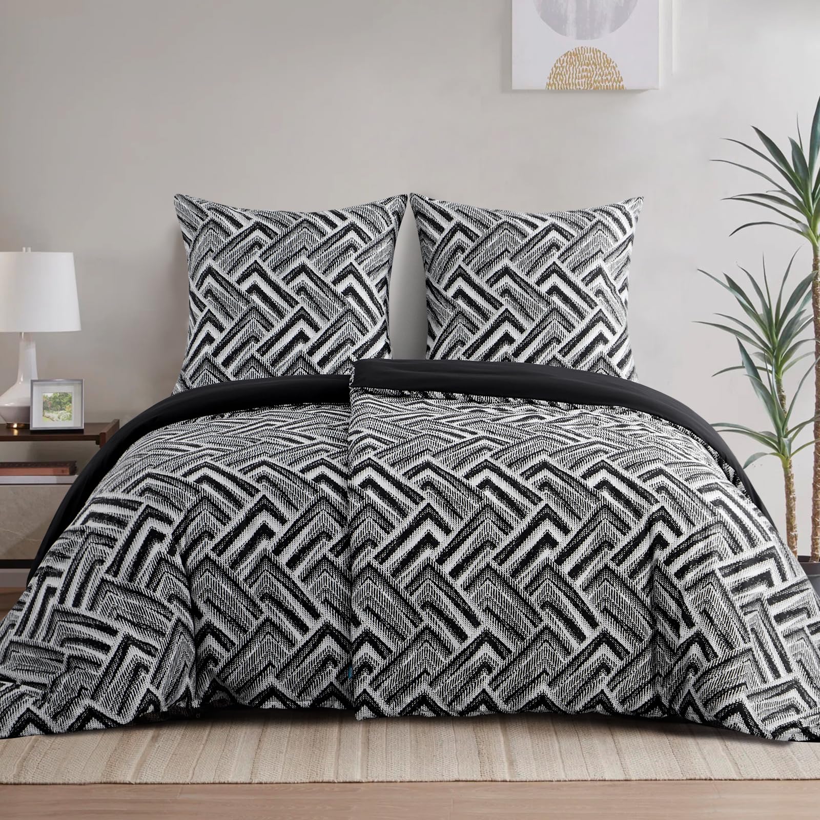 đ RUIKASI BettwĂ€sche 135x200 4teilig Schwarz - BettbezĂŒge 135 x 200 2er Set mit Geometrie Muster, BettwĂ€sche-Sets 135x200cm đ
