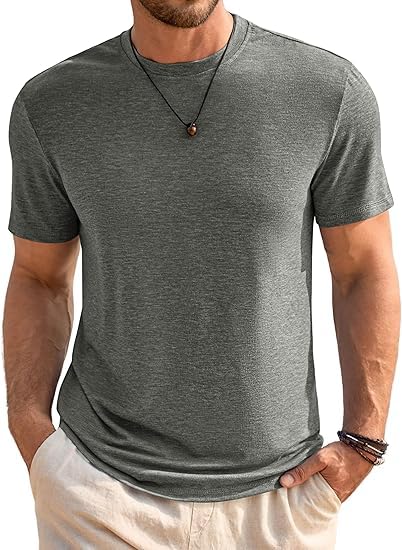 Runcati Herren T-Shirt Rundhals Kurzarm Sommer Oberteile Regular Fit Sport Fitness Funktionsshirt Einfarbig Basic Unterhemd Business Shirts Dunkelgrau XL