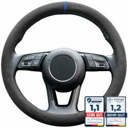 S-TETIC® Premium Lenkradbezug aus Alcantara | Blaue 12-Uhr Markierung | Universalgröße 36-38 cm | Lenkradcover | für Sommer und Winter