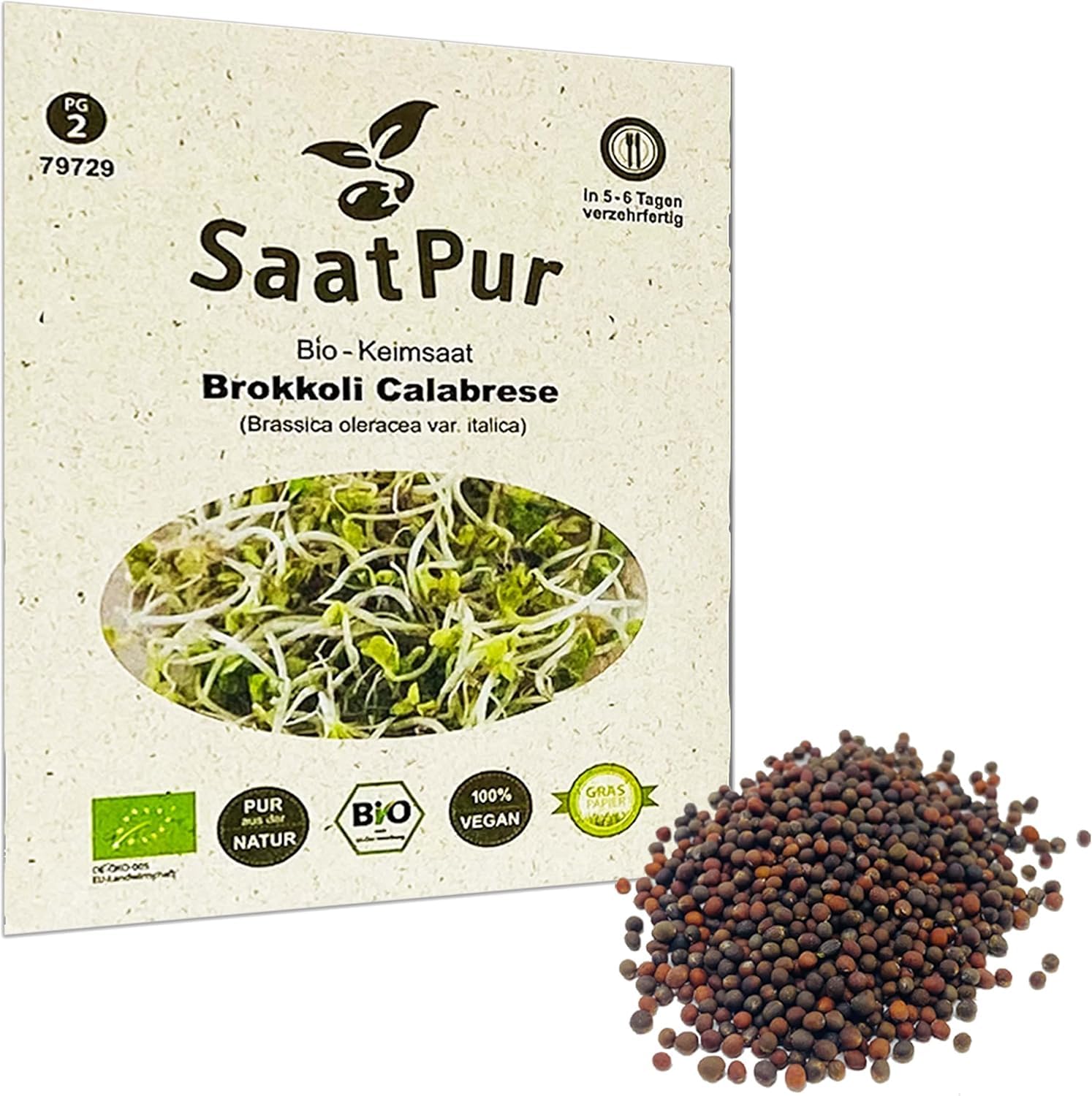 SaatPur Bio Keimsaat - Brokkoli Keimsprossen Sprossen Microgreen - 20 g Lebensmittel Qualität Unter 100 g Brokkoli Calabrese